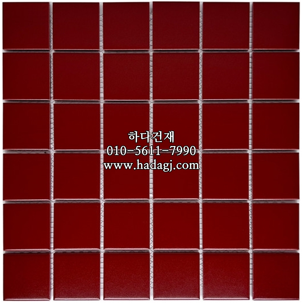 정각 모자이크타일 48x48x6T 버건디 무광 / 하다건재