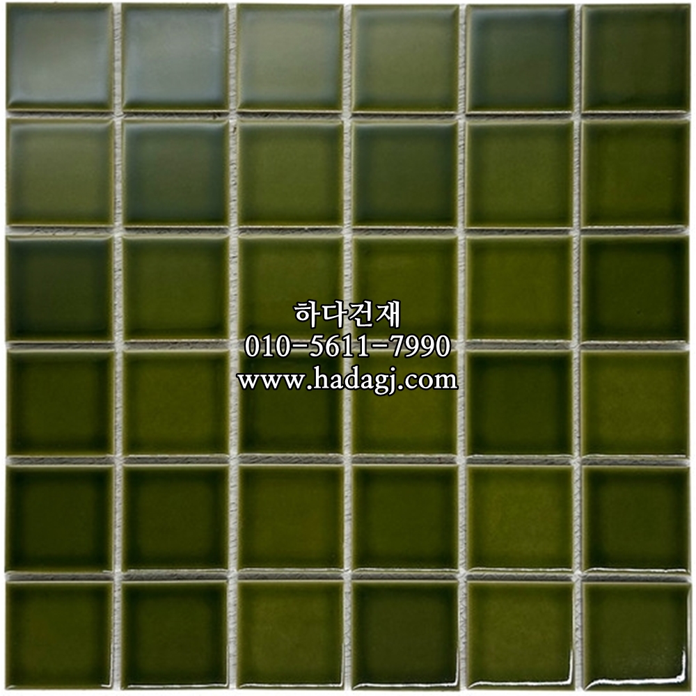 정각 모자이크타일 48x48x6T 올리브그린 유광 / 하다건재