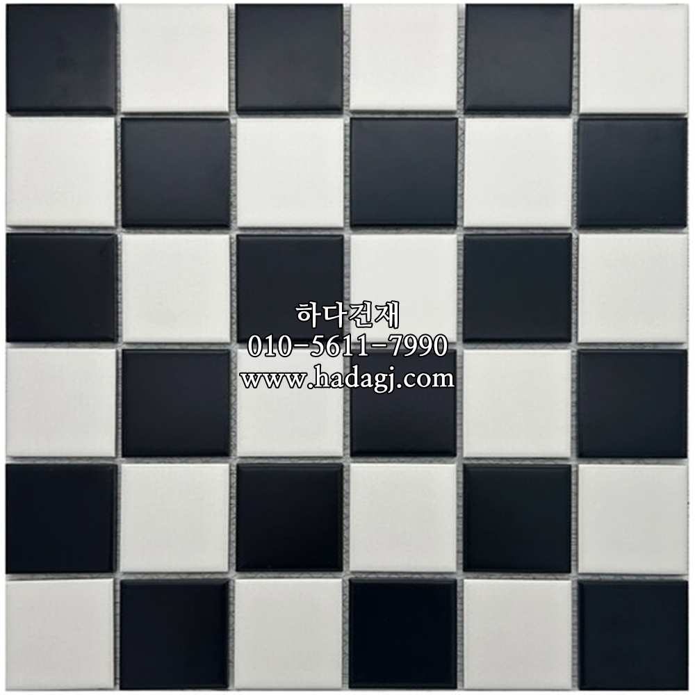 정각 모자이크타일 48x48x6T 화이트블랙 무광 / 하다건재