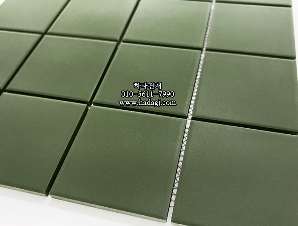 정사각 모자이크타일 73x73x7T 그린티 그린 무광 자기질타일 / 하다건재