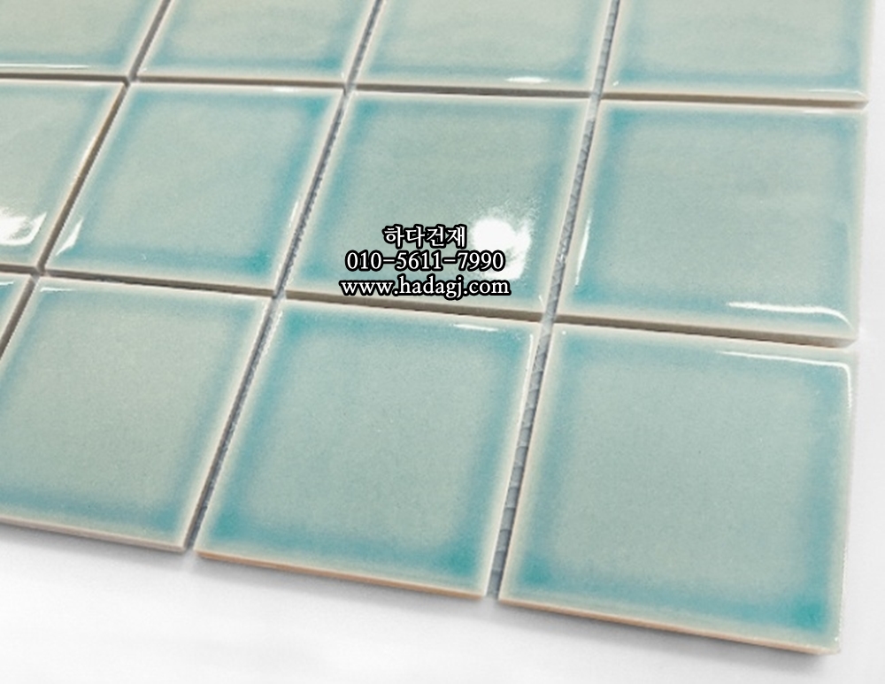 정사각 모자이크타일 73x73x7T 소다 블루 유광 자기질타일 / 하다건재