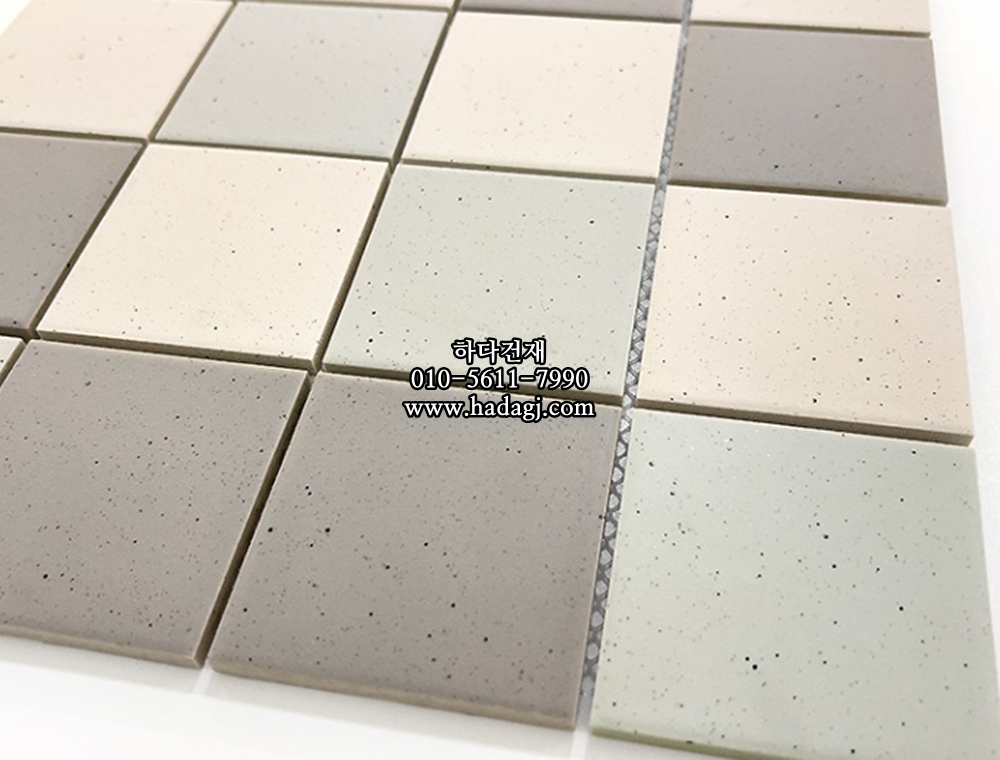 정사각 모자이크타일 73x73x7T 쿠키믹스 아이보리 그레이 무광 자기질타일 / 하다건재