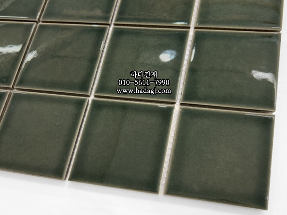 정사각 모자이크타일 73x73x7T 쑥 그린 유광 자기질타일 / 하다건재