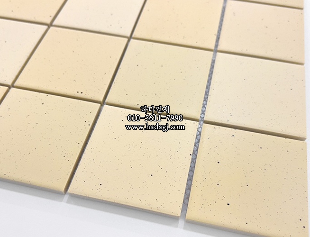 정사각 모자이크타일 73x73x7T 바닐라 아이보리 무광 자기질타일 / 하다건재