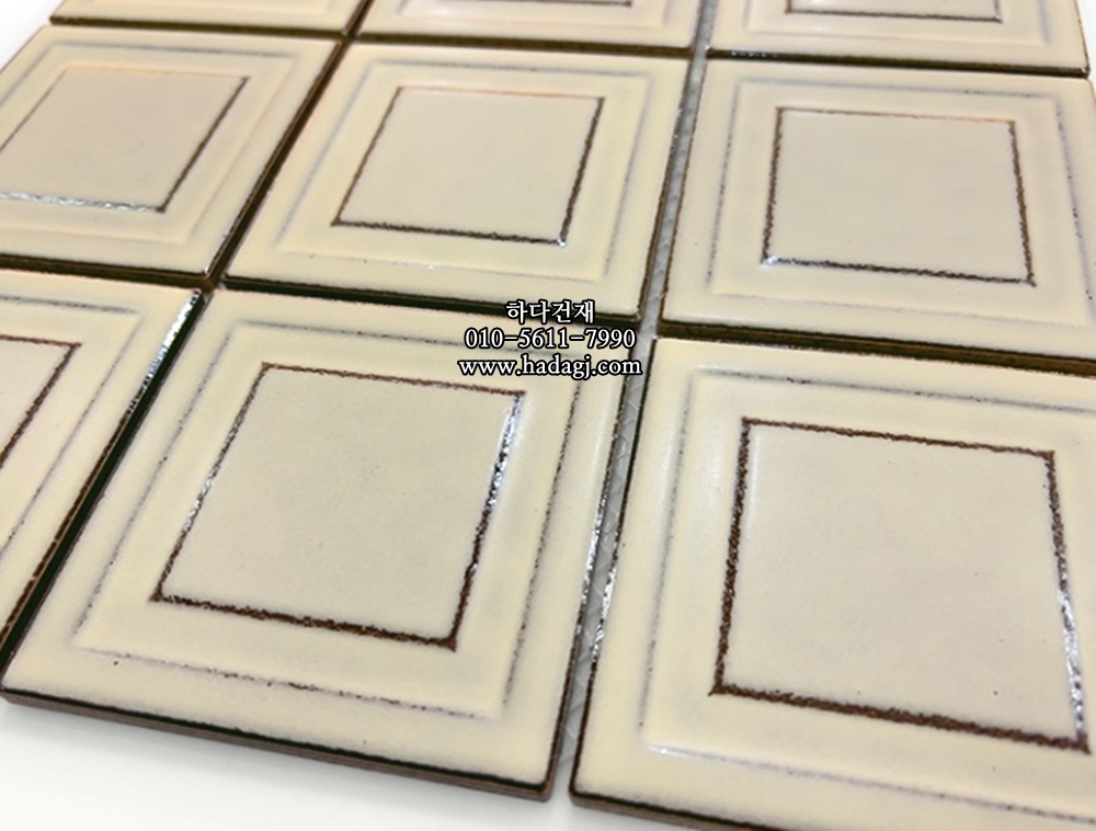 입체 정사각 모자이크타일 97x97x7T 미스트 아이보리 무광 자기질타일 MIST / 하다건재